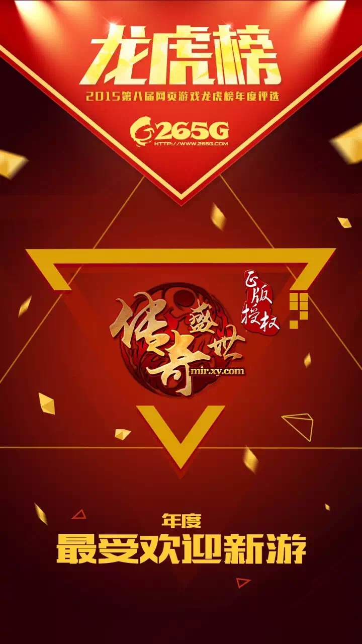 《传奇盛世》是XY游戏旗下引爆行业的千万级爆款产品。自开服以后,便以惊人的推广力度全面覆盖多家平台,每日开服量高达8服/天,单日最高流水与单月最高流水分别突破500万和6000万。在刚结束的265G龙虎榜中,更是力压众游一举拿下“年度最受欢迎新游奖”。另外,其优异表现也受到40407众评委的认可,荣获40407风云榜“2015年度十大最受欢迎网页游戏”、“2015年度十大新锐网页游戏”等殊荣。鉴于其抢眼的流水表现和未来不定期的巨资投资计划,《传奇盛世》在2016年势必迎来二次爆发。