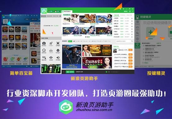 新浪页游助手的实力与幕后团队的研发贡献是分不开。联手松果游戏品牌及其游戏团队,新浪游戏开始了全方位的发展。像同属于松果团队开发的按键精灵与简单百宝箱等插件受到了业内广泛好评,并为本次页游助手的开发提供了经验积累及数据支持,其中页游助手就是基于按键精灵的技术,为其提供全方位的脚本。